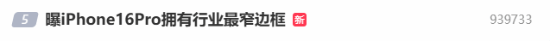 "苹果16Pro拥有行业最窄边框"上热搜 网友:先改善续航