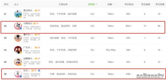 据飞瓜数据,在5月抖音带货达人榜中,与辉同行以5.33亿元销售额排名第二,而东方甄选则排名第6。