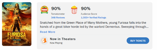 此前,《疯狂的麦克斯:狂暴女神》已定于6月7日在内地上映,截至发稿前,《疯狂的麦克斯:狂暴女神》的烂番茄新鲜度为90%。