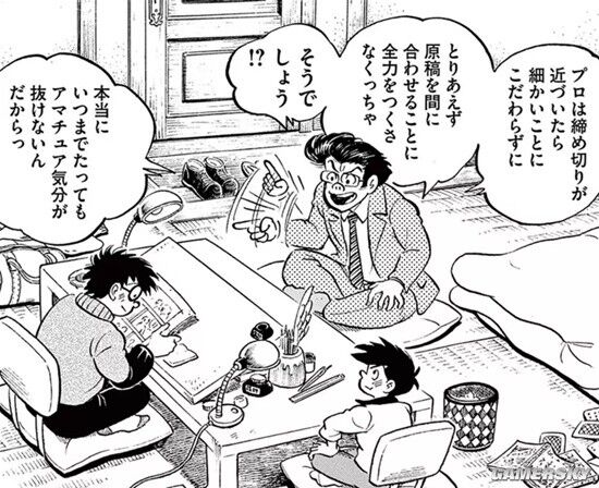 编辑:“既然是职业漫画家,都逼近截稿期限了,就不应该讲究细节,而是先把原稿完成才对吧。我说得有错吗!?你什么时候才要抛弃这种业余心态啊?”
