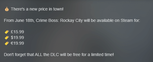 已在Epic独占了一年的《法外枭雄:滚石城》将于6月18日正式在Steam发售。日前,官方公布了该作的售价,仅为19.99美元(约144元),比其它平台低得多,并且所有DLC也限时免费获得。该游戏在Epic售价为39.99美元(约289元)。