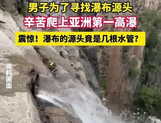 云台山瀑布源头竟是几根水管 网友表示是常规操作