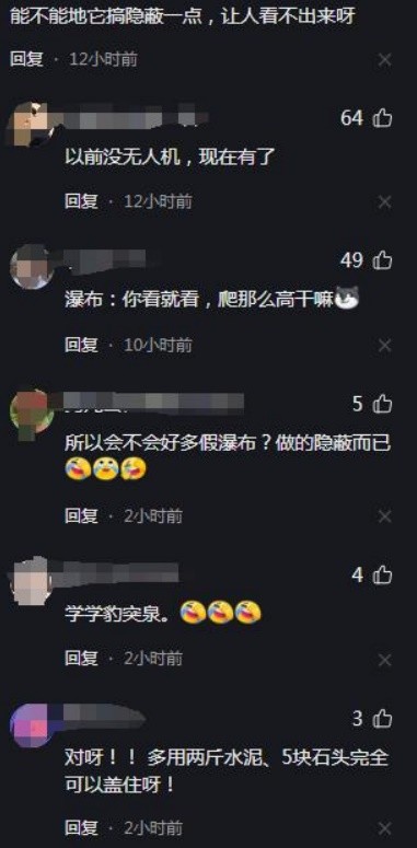 那天他正好玩无人机,本来是想给瀑布拍几张美美的照片,经过千辛万苦找到瀑布源头的他傻眼了,源头竟然居然不是纯天然的,而是几根水管在放水,大失所望。
