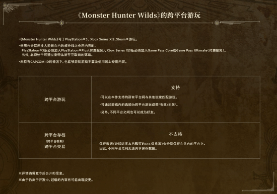《怪物猎人:荒野》宣布支持PS5、XSX|S、Steam跨平台游玩,在未持有CAPCOM ID的情况下,也能够游玩游戏本篇及使用线上专用内容。