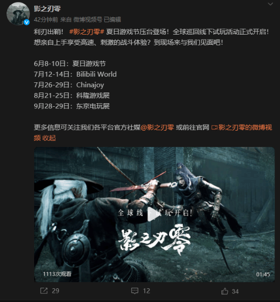 夏日游戏节:《影之刃零》新预告 CJ、BW线下试玩