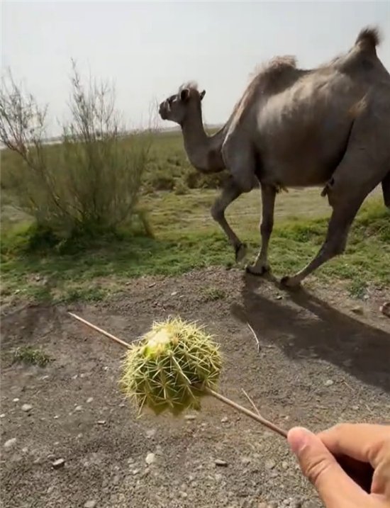 视频中,博主将两颗仙人球和一颗柠檬简单穿了穿来喂骆驼,骆驼吃掉仙人球后,随即将整颗柠檬给炫进了嘴里,并开始大口咀嚼,然而下一秒就变了脸色,直接将柠檬给吐了出来,并像人类被酸到了一般,不停流口水。