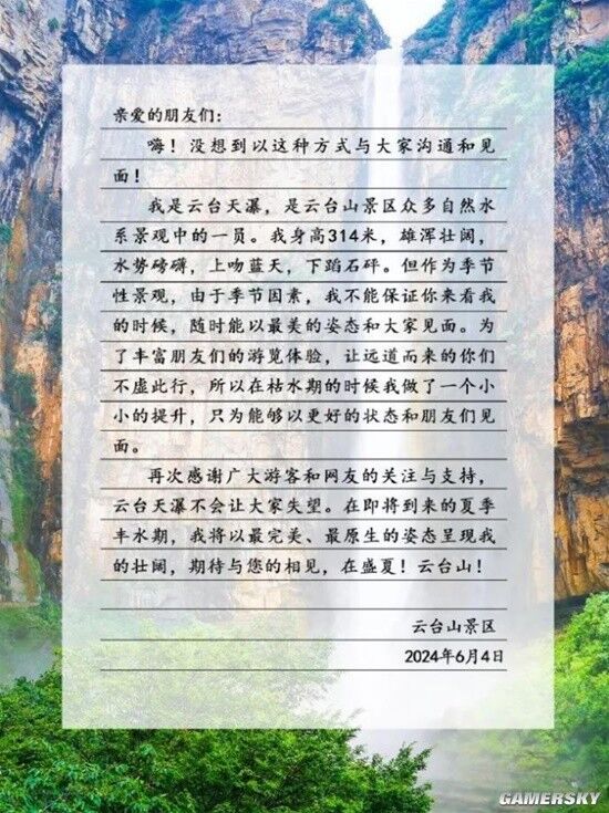面对舆论,云台山景区通过官方微信公众号发布了对于此事的回应《大家好!我是云台天瀑!》。
