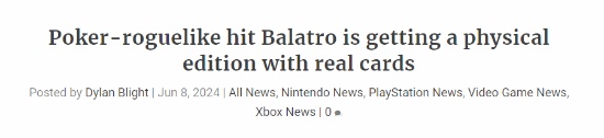 据报道,扑克题材肉鸽游戏《小丑牌》将推出Switch、PlayStation和Xbox的实体版本。预计不久后就会开放预购。