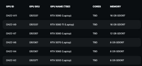 RTX 50系列笔记本GPU曝光!最高16GB显存 六款型号