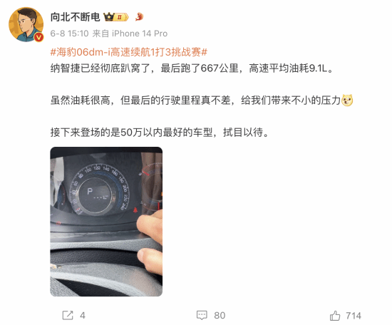 博主挑战海豹06高速续航1打3:飞度一箱油跑600公里