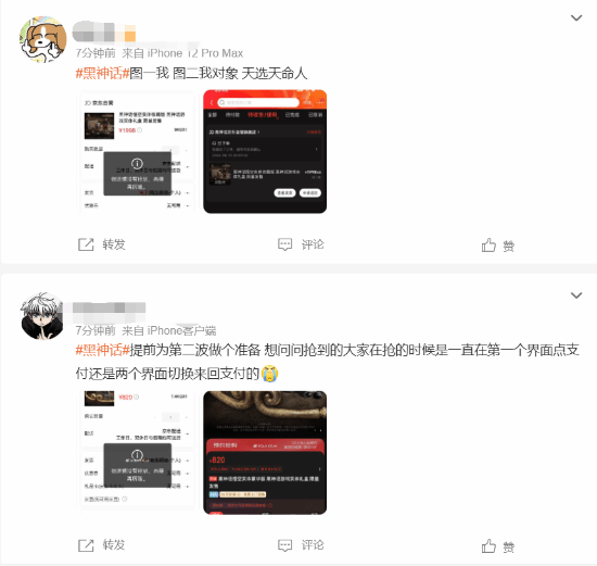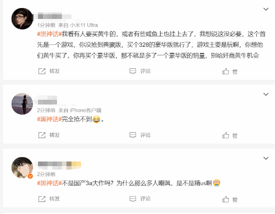 大量微博网友都发布微博感叹没能成功抢到,也有一些成功抢到手的玩家称自己是“天命人”。而那些没有抢到的有人在痛骂黄牛加价转售,有人已经在为第二波预售进行准备了。