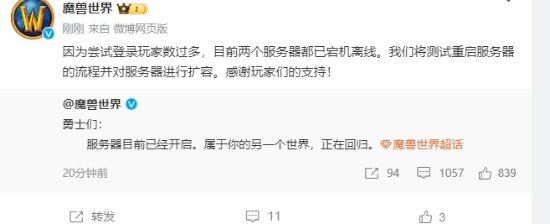 《魔兽世界》国服已开测 服务器爆满崩溃无法进入