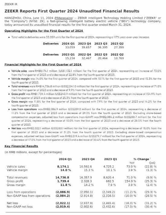 极氪发布24年Q1财报:营收147.37亿元 同比增长71%