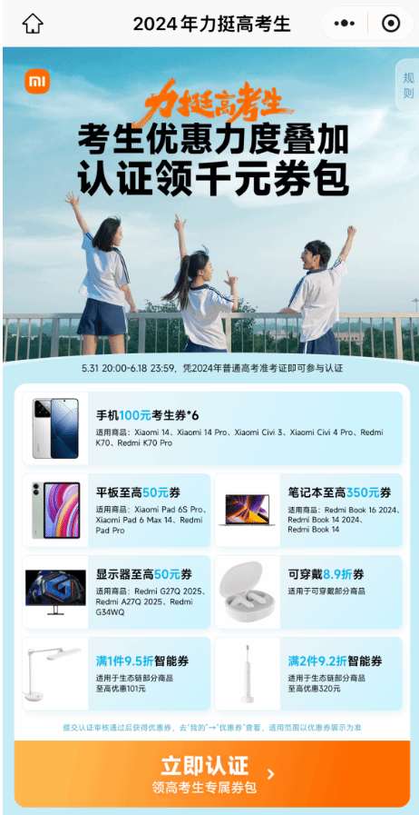 值得注意的是,小米近期还推出了高考优惠,凭准考证可以领千元券包。