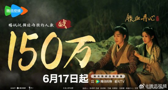 继昨日腾讯宣布《金庸武侠世界》将于6月17日18点腾讯视频全网独播之后,今日腾讯视频官方正式宣布:《金庸武侠世界》预约人数已破150万!官方还发布了贺图庆祝,我们一起来看一下。