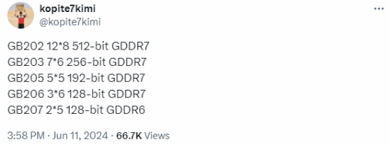 Kopite7kimi也表示,GB207 “多半”(Probably)不仅支持GDDR6显存。因此MEGAsizeGPU认为,基于GB207核心的桌面端显卡将仅使用GDDR6,但对应的移动端显卡则仍将更新到GDDR7显存。