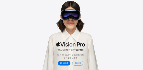 据苹果官网显示,Vision Pro国行版将于6月14日开启预购,起售价是29999元。