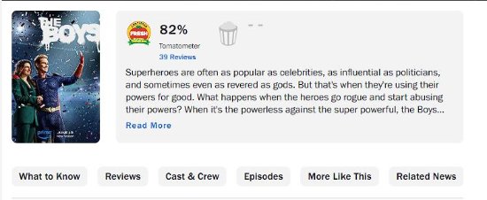 《黑袍纠察队》第4季烂番茄评分出炉,本季目前收录39家媒体评价,新鲜度仅为82%,是该系列的最低分。