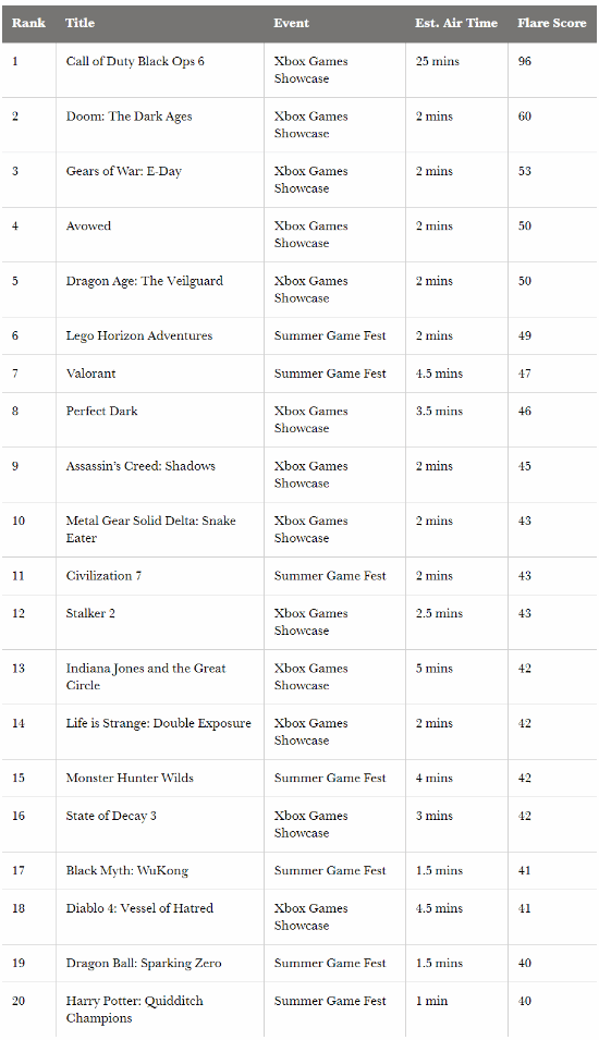 夏季发布会游戏热度Top20:COD21登顶 黑神话上榜