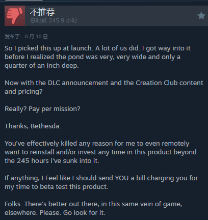 《星空》更新后Steam差评上涨!单个任务竟收费7刀