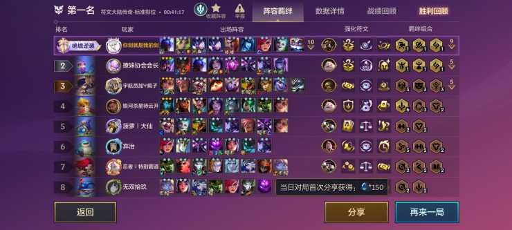 在定级赛的时候,这套阵容玩的人还不是很多,但是段位稍微高一点之后,就特别卷了,有时候甚至一局能出现六七家。这种情况下,上分就不太稳了,毕竟,大家都是同样的阵容,就看谁的质量更高了。