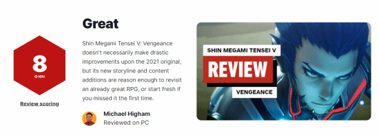 《真女神转生5:复仇》媒体口碑已解禁,IGN给出了8分的好评。