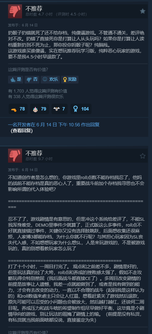 玩家们普遍反映《活侠传》的游戏机制存在严重问题,特别是骰子决定命运的设计让许多玩家感到挫败。有玩家评论道:“在这款游戏里,你将扮演一个又丑又弱又没钱的哥布林。你的命运将由骰子决定,跟你自身的属性修炼没什么太大关系,点数没抛好,直接错过一些事件。”