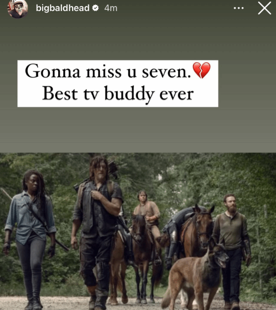 据报道,美剧《行尸走肉》中达里尔·迪克森的狗狗同伴“Seven”已去世。演员诺曼·瑞杜斯晒出合影发文悼念。
