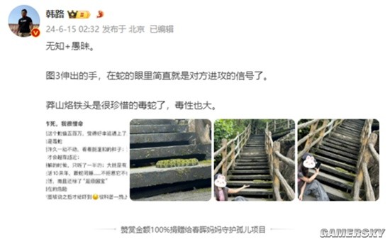 著名汽车博主韩路看到后,直接怒斥其“无知+愚昧”“图3伸出的手,在蛇的眼里简直就是对方进攻的信号了。”