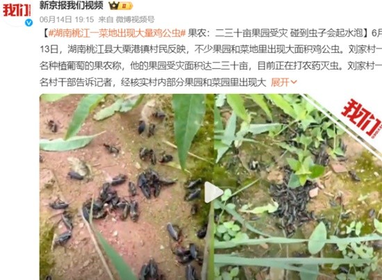 刘家村一名村干部告诉记者,经核实村内部分果园和菜园里出现大量鸡公虫。14日记者从大栗港镇政府获悉,已安排农技人员到一线指导村民灭虫。