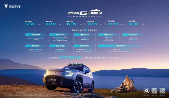 深蓝全新硬派SUV深蓝G318现已正式上市,新车共推出6款车型,售价区间为17.59-31.8万元。