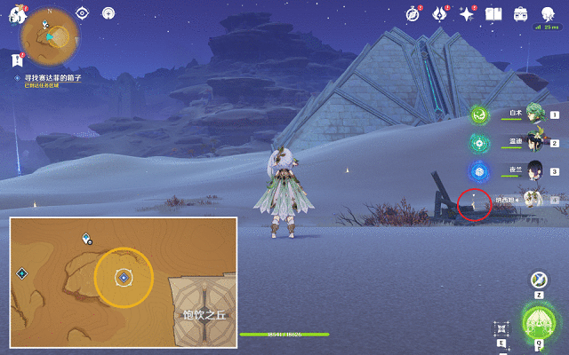 4、接着传送到饱饮之丘, 找到图中右侧发光点,击败出现的敌人即可。