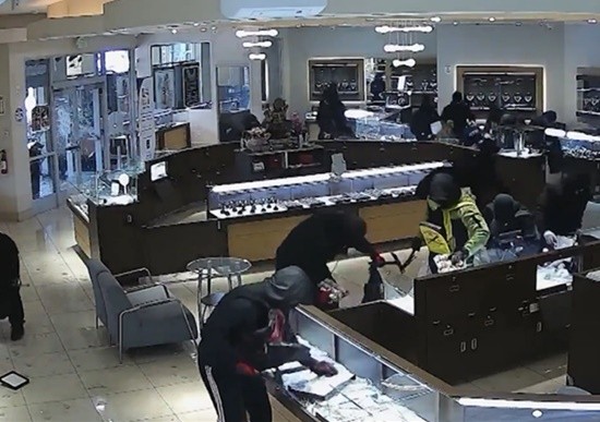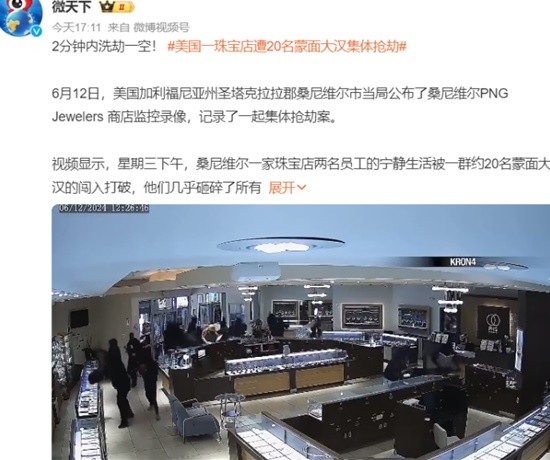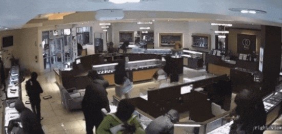 美国珠宝店遭20名蒙面大汉集体抢劫 2分钟洗劫一空