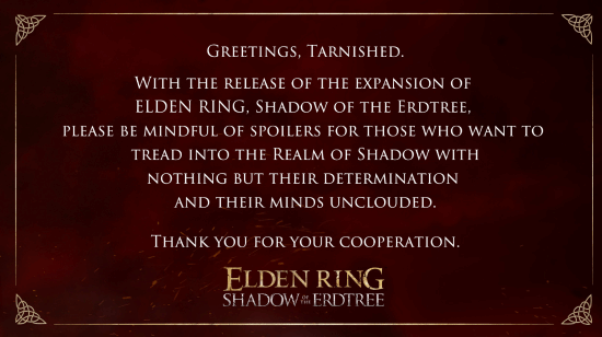 《艾尔登法环》的DLC《黄金树幽影》即将上线,今日官方再次发推,提醒玩家严防DLC剧透等泄露内容,我们一起来看一下。