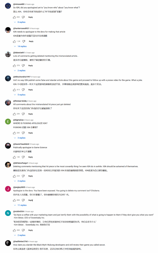 道歉了吗你!IGN《黑神话》前瞻评论区被喷