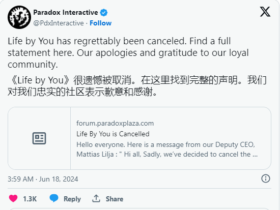 "艰难的决定"来了!P社类模拟人生新作《Life By You》宣布取消