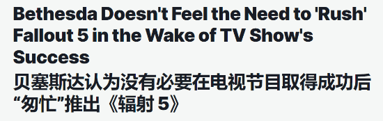 “对于未来的其他辐射游戏,你知道,显然我现在不能谈论这些,但我想说,(很快就出)有点匆忙。或者我们需要推出一些不同于我们在《辐射76》中所做的工作的东西……我觉得我们不必着急。”陶德说到,“《辐射》剧集在系列剧情方面填补了一定的空白。”