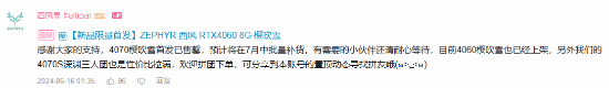 这款显卡的价格为4199元,西风表示,这款显卡的第一批次现已售罄,第二批将在7月中旬批量补货。