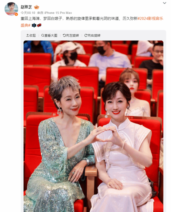 6月18日,赵雅芝晒出多张盛典同台的合照,在网上引发一波回忆杀。赵雅芝晒照写道:“重回上海滩,梦回白娘子,熟悉的旋律里承载着光阴的味道、历久弥新。”