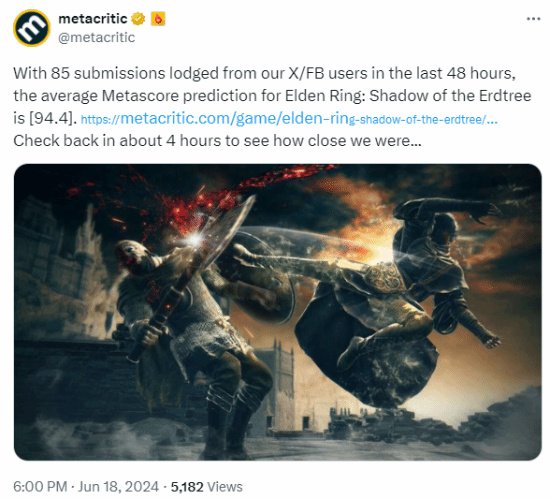 玩家一致看好!M站《艾尔登法环》DLC预测均分94分