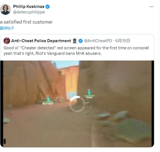 但事实是,拳头自然想到了这些图谋不轨的玩家。拳头游戏的反作弊主管Phillip Koskinas近日在推特上分享了一段视频,配文“满意的第一个客户。”视频中的玩家因为使用键鼠转换器被检测,对局当场关闭,可见拳头将使用转换器的玩家与作弊玩家视为同罪。