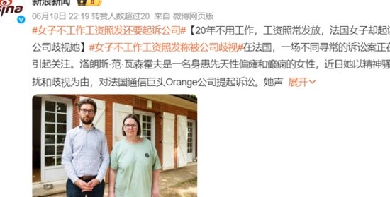 法国女子20年不工作工资照发 却起诉公司歧视她