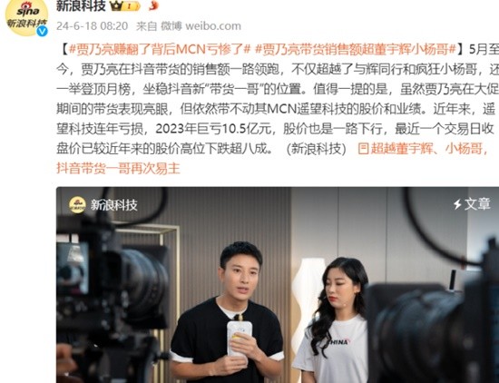 贾乃亮带货销售额超董宇辉小杨哥 但背后MCN亏惨了
