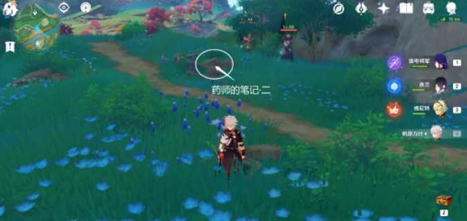 清理「药师的笔记·三」附近的野伏,在树下石堆上获得「药师的笔记·三」