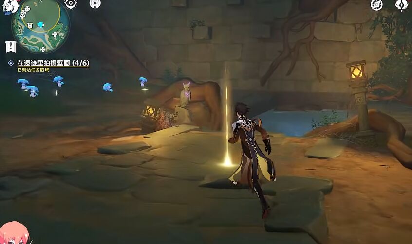 8、到达光标后直接对着壁画拍一站照片就完成了。