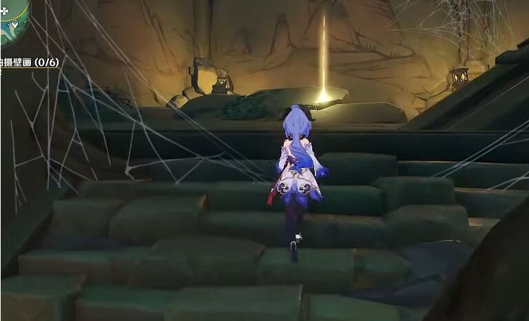 10、一直前进后到达地方可以往头上看就可以看到壁画,只需要拍照就能完成这个任务了。