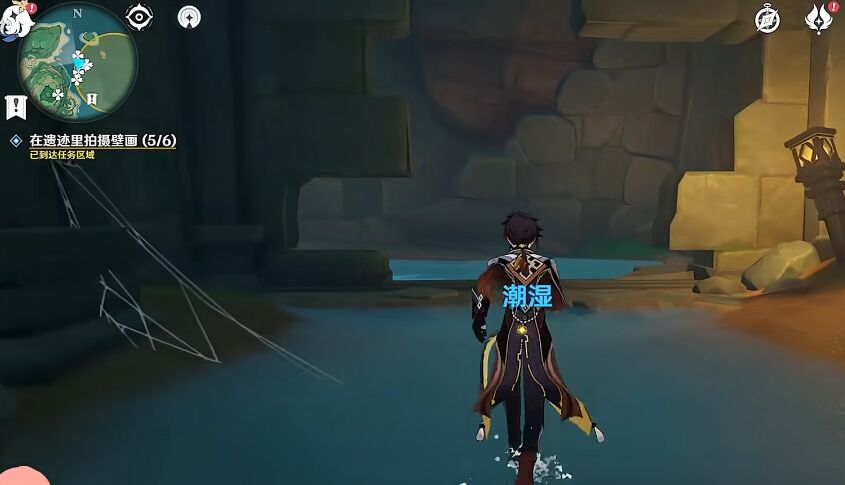 6、然后玩家原路返回往东北方向走可以发现进入,然后可以看到壁画在人物的后方直接拍照即可。