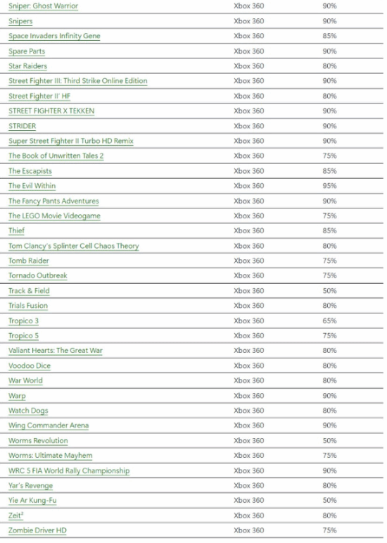 在正式关停前,微软为众多Xbox 360游戏开启了降价促销,降幅最高达到90%。5月份首轮促销发售时,参与的Xbox 360游戏大约有60多款,其中包括《古墓丽影》和《孤岛惊魂4》等游戏,本周又新增了第二批游戏参与促销,目前超过了150款。