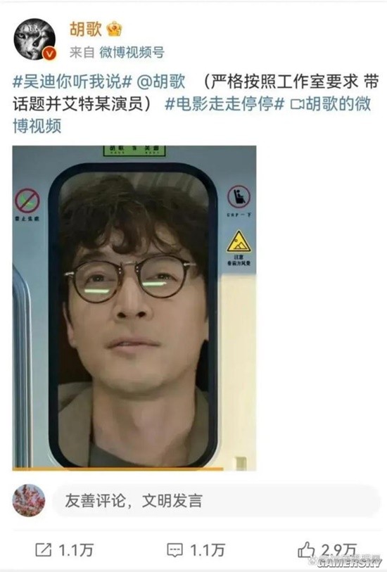 于是胡歌发博说:严格按照工作室要求带话题并艾特演员。