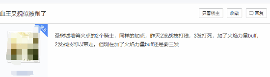 贴吧玩家测试后反馈,该补丁对部分武器进行了平衡性调整。其中,强力武器亵渎圣剑的战技冲击力疑似被削弱,暗月大剑远程削韧有所削弱,蒙格圣血矛出血效果削弱。